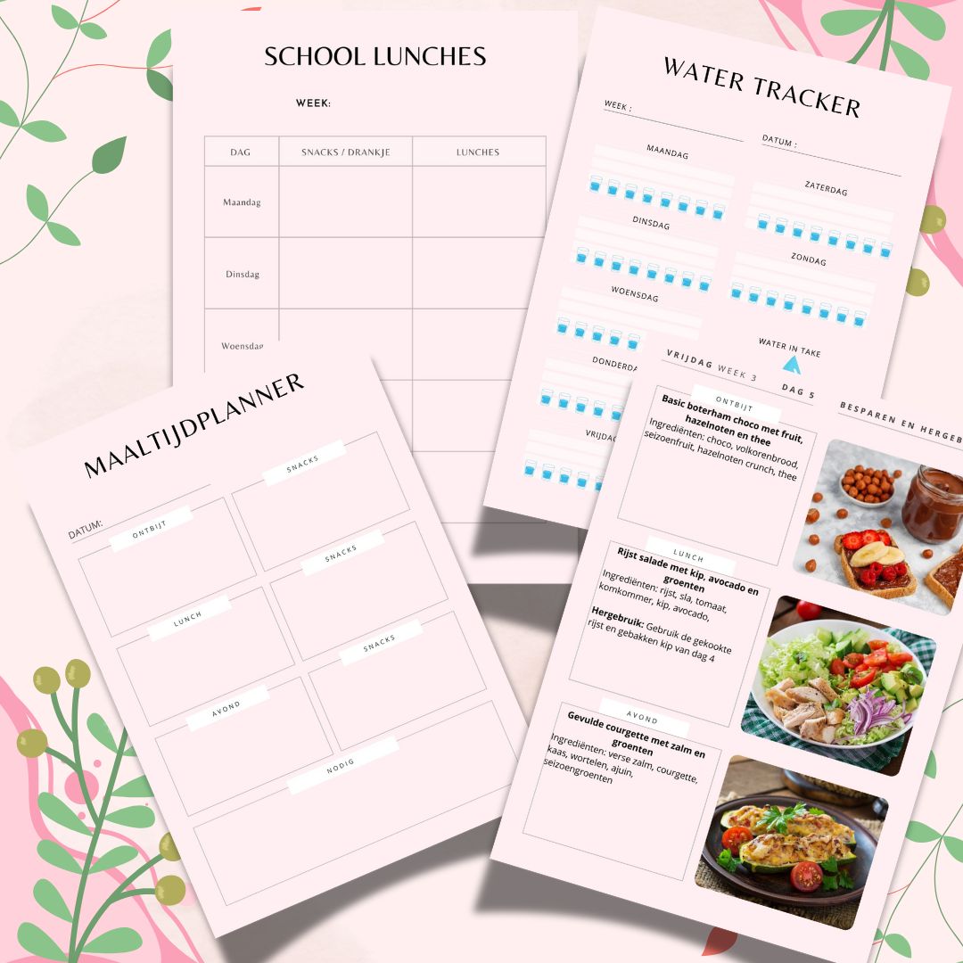 De Maaltijd Planner is afdrukbaar op A4 formaat. De planningspagina’s kun je steeds opnieuw uitprinten en gebruiken.